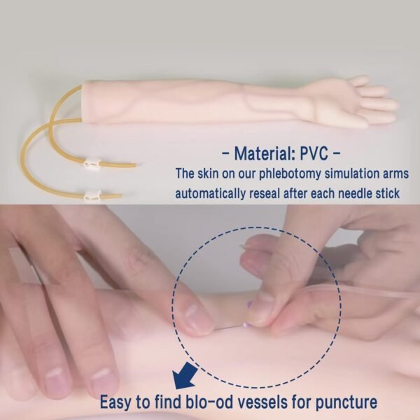 This IV Practice Arm feels like the real human arm and skin. It helps you to practice and perfect your blood draw, venipuncture, phlebotomy, and iv skills before working clinical practice on patients’ arm.