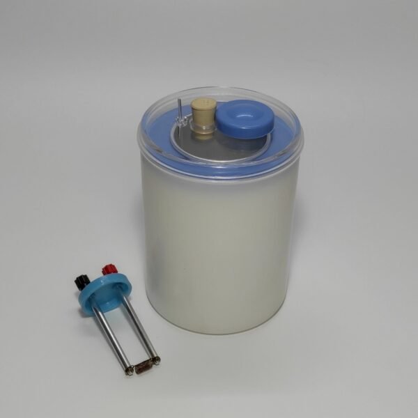 Use this versatile double-walled calorimeter with or without the electric heating element. With the heating element, students can determine the electrical equivalent of heat, or they can use the calorimeter without the heating element as a standard double-walled calorimeter. The spring heating element operates on 0–6 V DC and approximately 2–3.5 W. The 1.7-cm thick polystyrene lining, plastic insulator ring and aluminum heat reservoir are designed to control heat loss. Reservoir has 150-mL capacity and has a built-in thermometer cork. Size: 10.5 cm diameter x 10 cm high.