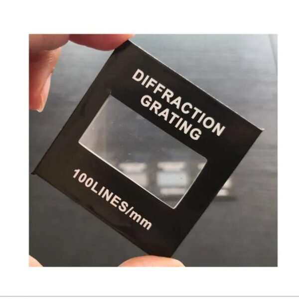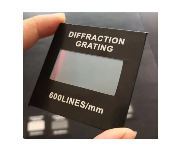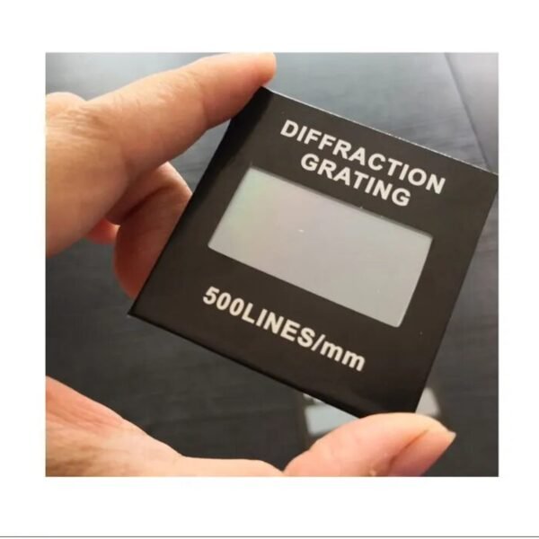 Diffraction grating have 50 lines per millimete, 100 lines per millimeter, 300 lines per millimeter, 500 lines per millimeter, 600 lines per millimeter, measures 45mm x 60mm (H x W), and is protected by glass plates.