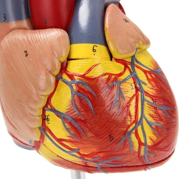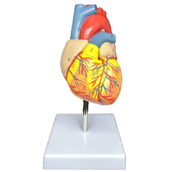 Life-size human heart model on base for use in for patient education or anatomical study.