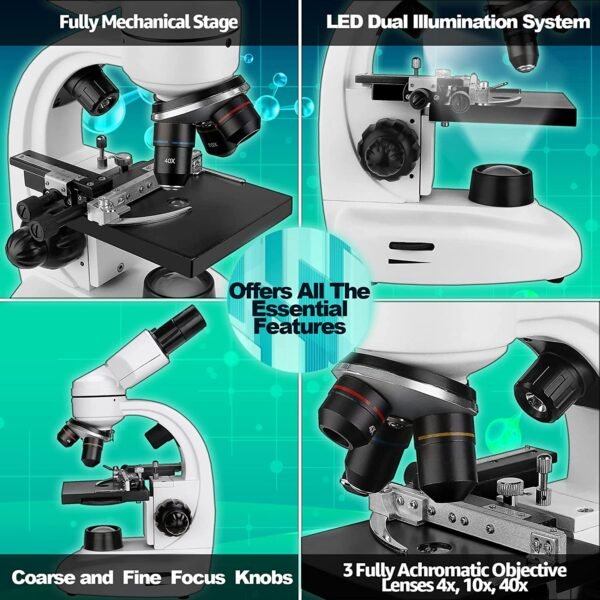 Dual focus system: Coarse and fine adjustment (coaxial) Focus range 15mm